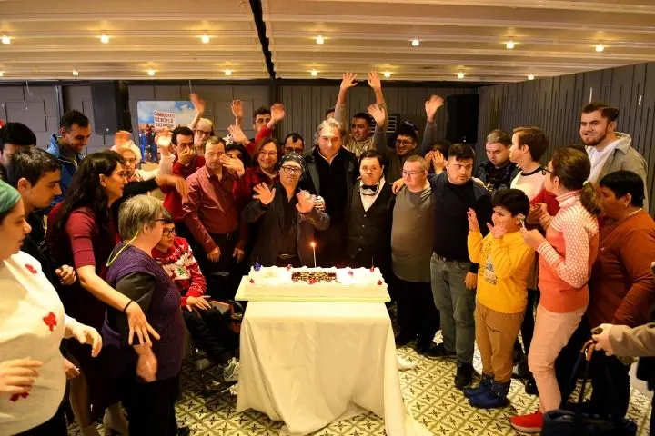Özel gereksinimli bireyler düzenlenen etkinlikte yeni yıl pastasının mumlarını birlikte üflerken yeni yıl için güzel dileklerde bulundu. Müzik eşliğinde dans ederek keyifli dakikalar geçiren katılımcılara noel baba da eşlik etti.