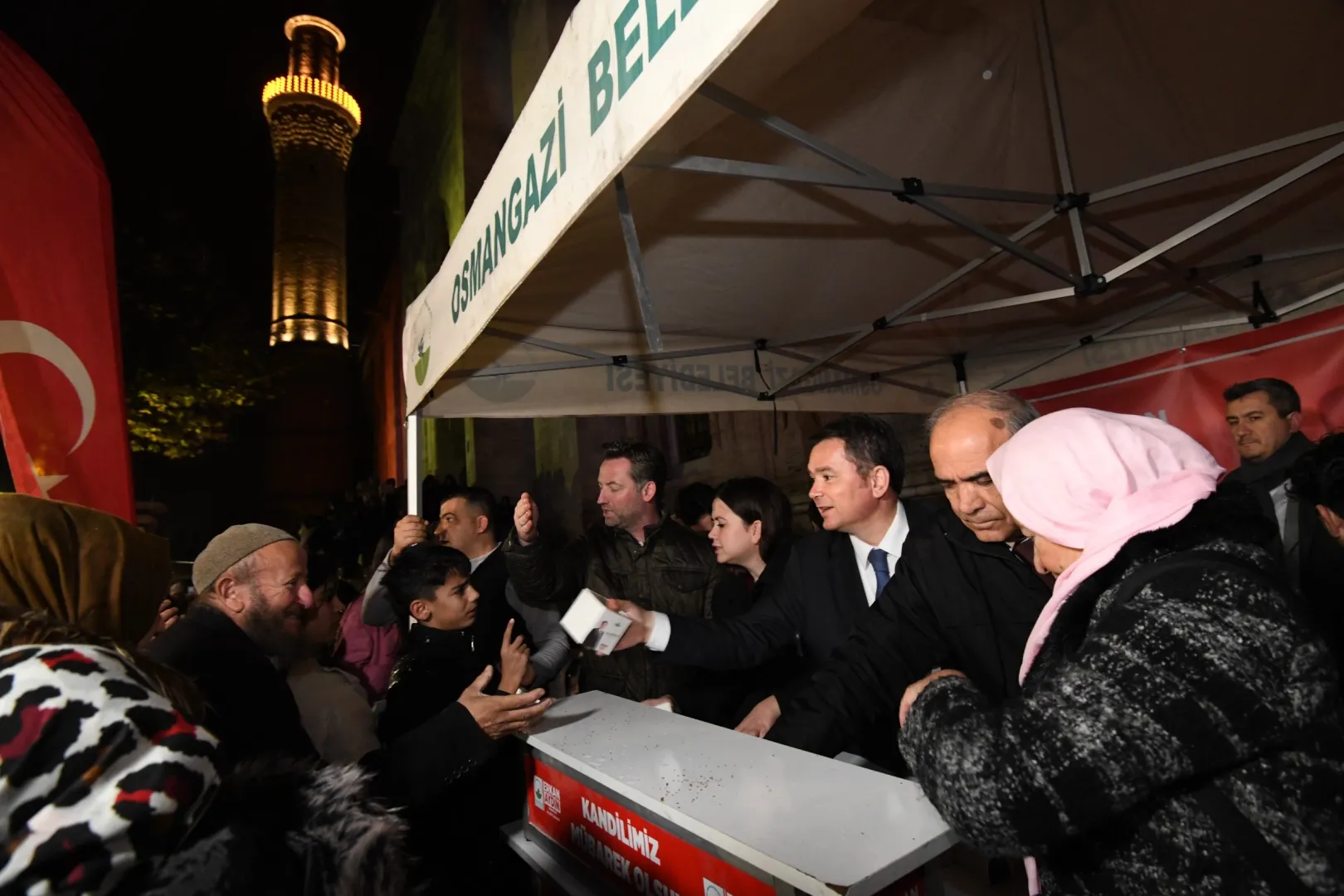 Bursa'da Osmangazi Belediye Başkanı Erkan Aydın, Ulucami’de kandil simidi ikramında bulunarak Bursalıların ve tüm İslam aleminin Regaip Kandilini kutladı. Başkan Aydın, ‘Tüm Bursa ve Osmangazililerin Regaip Kandilini tebrik ediyorum’ ifadelerini kullandı.