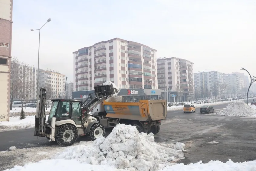 DİYARBAKIR (İGFA) - Diyarbakır Büyükşehir Belediyesi, kar ve buzlanma nedeniyle bazı kritik kavşak ve güzergâhlarda artan trafik yoğunluğunu gidermek amacıyla ana arterlerin kenarlarında biriken karları temizliyor.