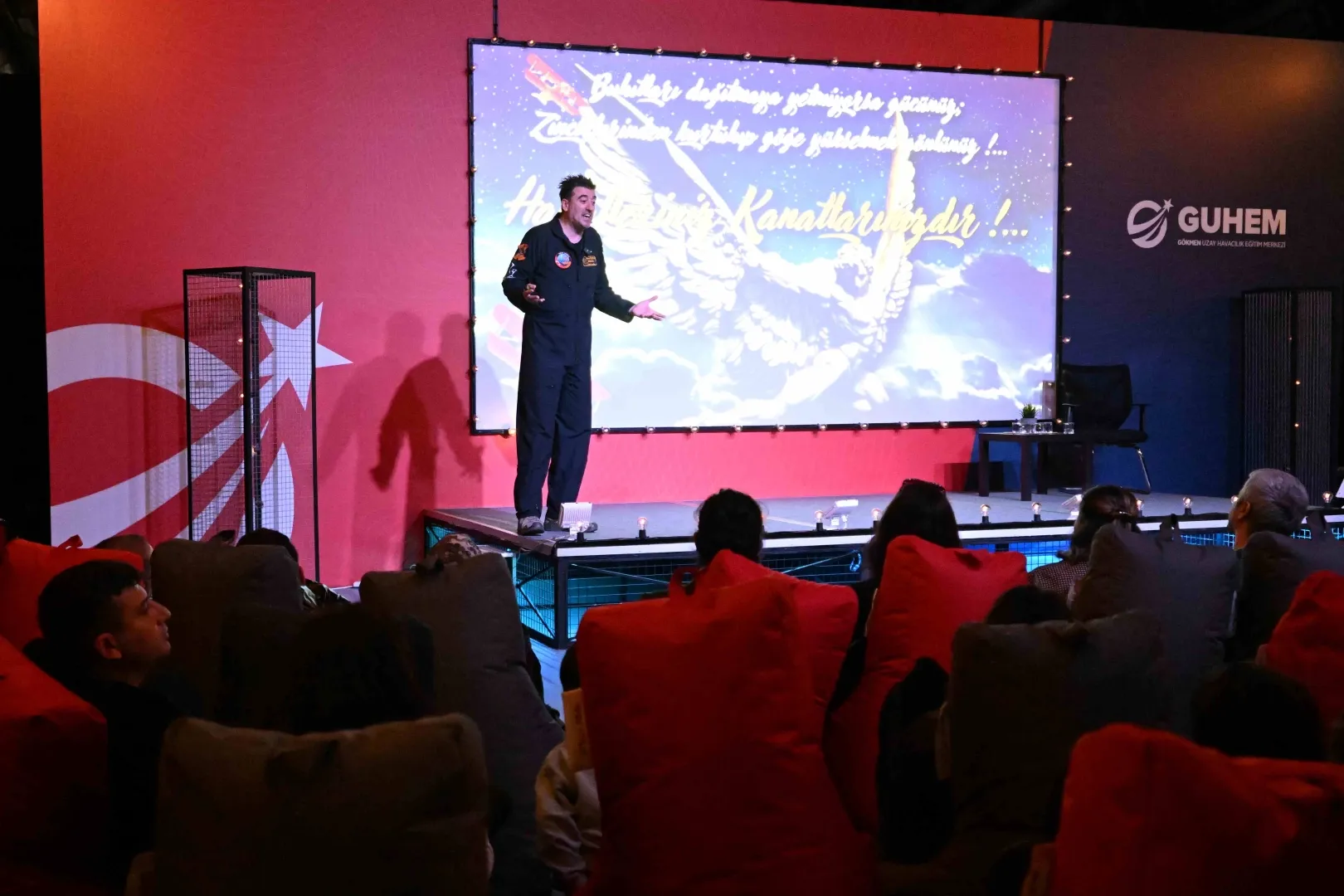 Alanında Avrupa’nın en büyük, dünyanın ise sayılı merkezlerinden biri olan GUHEM, havacılık ve uzay profesyonellerini gençlerle ve ziyaretçilerle buluşturmaya devam ediyor. Bu kapsamda gerçekleştirilen söyleşide Özpala; uçuş test süreçleri, kokpit içinde alınan kritik kararlar ve test pilotlarının taşıdığı büyük sorumluluklara dair önemli bilgiler aktardı.