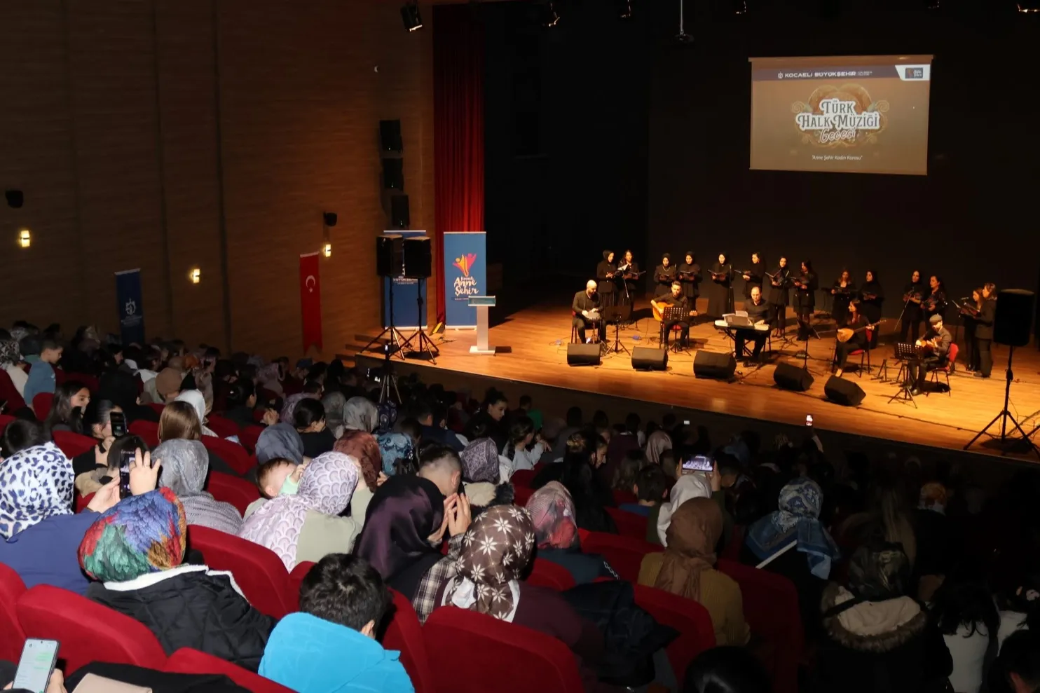 KOCAELİ (İGFA) - Kadın ve Aile Hizmetleri Dairesi Başkanlığı Anne Şehir Merkezi Defne’de Türk Halk Müziği Korosu derslerine katılan kadınlar, uzun süredir sürdürdükleri çalışmaların karşılığını sahne performanslarıyla aldı. Koro, Anne Şehir Merkezi Defne’de bulunan Kılavuz Gençlik Merkezi Konferans Salonu’nda kulakların pasını silen bir konsere imza attı. Programa Kadın ve Aile Hizmetleri Dairesi Başkanı Nagehan Malkoç ile Kadın ve Aile Hizmetleri Şube Müdürü Tuğba Yılmaz da katıldı.