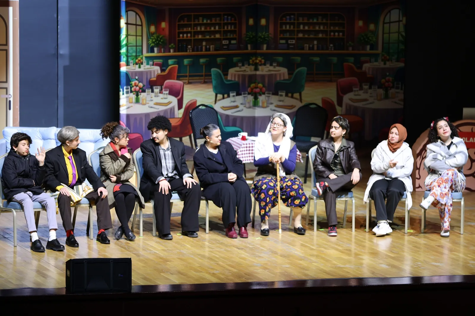 Gecenin sonunda genç tiyatrocular sergiledikleri performansla izleyicileri güldürdü ve tam not aldı.