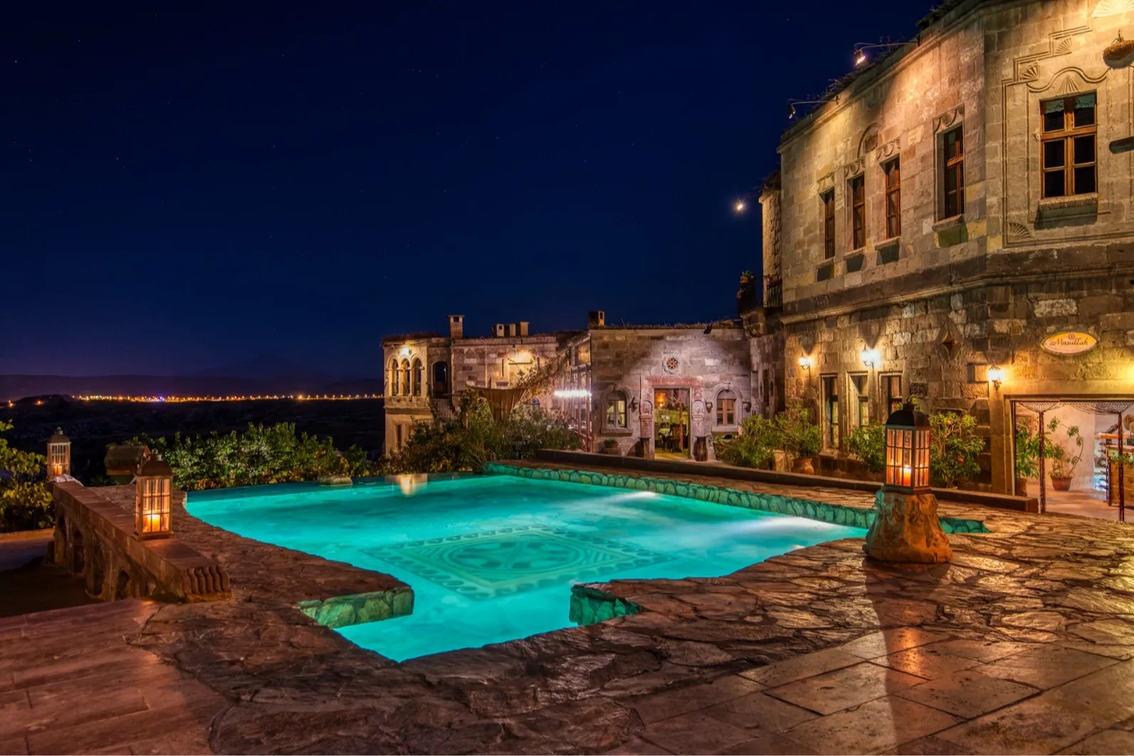 Yazıda, Museum Hotel’in 34 odasının doğrudan kayaya oyulmuş yapısına, yüksek tonozlu tavanlarına, kemerli kapılarına ve taş dokusunu tamamlayan sıcak aydınlatma anlayışına da yer verildi. Özellikle üç Imperial Pool Suite’te bulunan kayaya oyulmuş özel havuzlar, dikkat çeken detaylar arasında gösterildi.