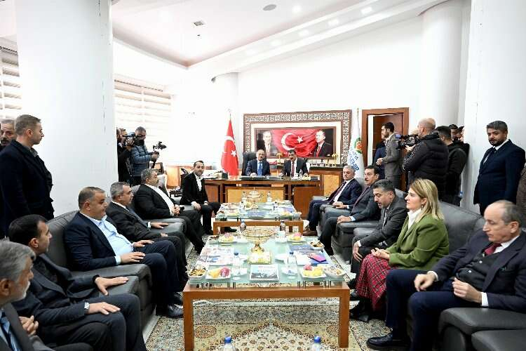 Bir dizi inceleme ve ziyaretlerde bulunmak üzere Malatya’ya gelen Çevre, Şehircilik ve İklim Değişikliği Bakanı Mehmet Özhaseki, beraberindeki heyetle birlikte Malatya Büyükşehir Belediye Başkanı Selahattin Gürkan’ı makamında ziyaret ederek, deprem sonrasında yapılan çalışmalarla ilgili istişarelerde bulundu.