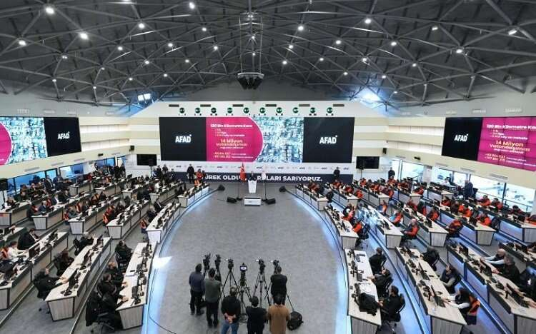 İçişleri Bakanı Ali Yerlikaya, 6 Şubat tarihinde Kahramanmaraş merkezli gerçekleşen depremler ile ilgili AFAD Başkanlığı Afet ve Acil Durum Yönetimi Merkezinde açıklamalarda bulundu.