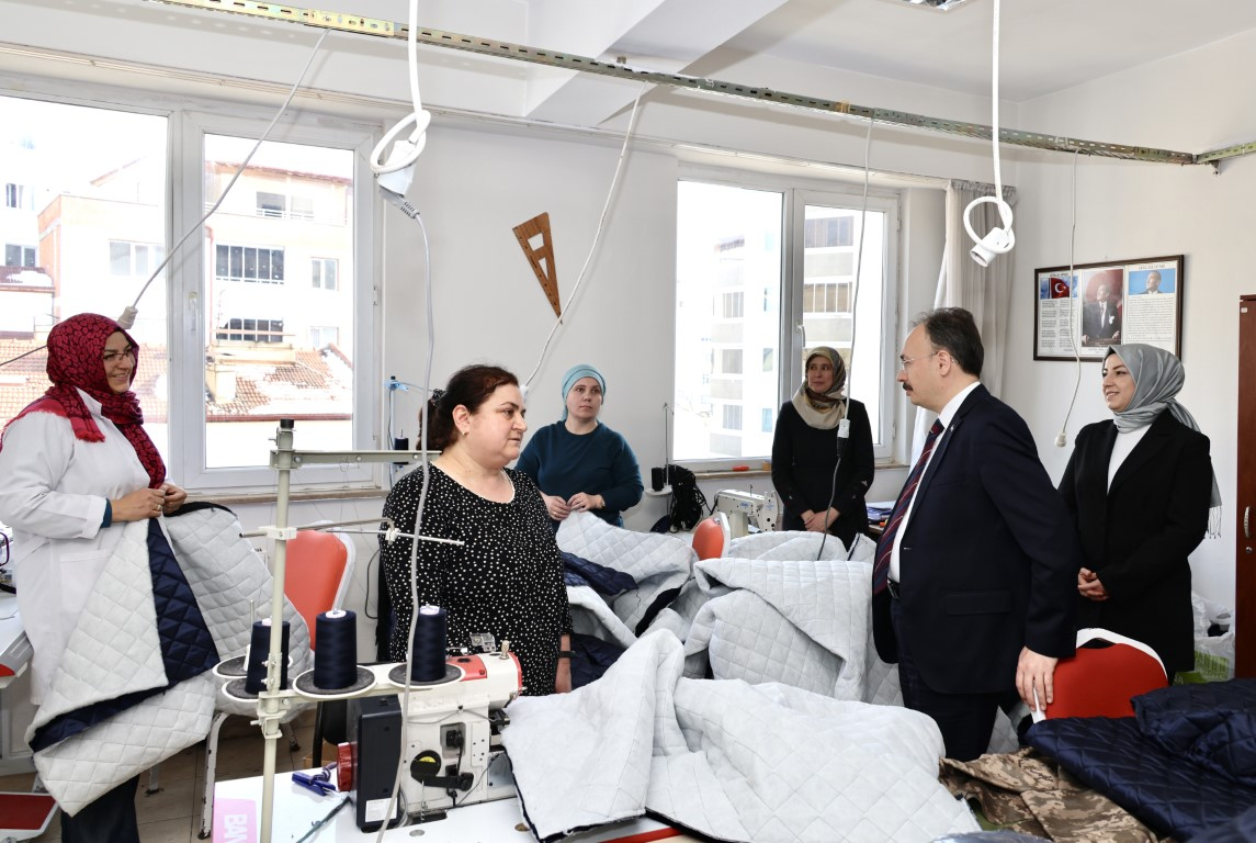 Bilecik Halk Eğitim Merkezi (HEM) kursiyerleri ve Mesleki ve Teknik Anadolu Lisesi Metal Atölyesi’nde öğrenciler ve öğretmenler depremzedeler için uyku tulumu ve soba üretiyorlar.