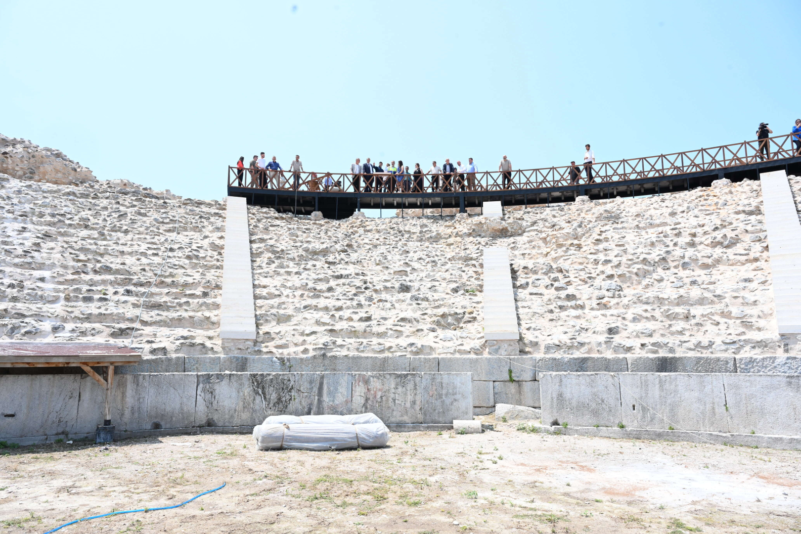 Bursa Kültür Varlıklarını Koruma Bölge Kurulu’nca onaylı proje kapsamında çalışmaların sürdüğünü hatırlatan Başkan Aktaş, “İznik Roma Tiyatrosu projesinde temel yaklaşım; mevcut oturma basamakları, sahne bölümü ve diğer yapı kalıntılarının olumsuz müdahale ve eklentilerden arındırılmasına, uygun bir şekilde korunması için dondurma ve derz işlemi yapılmasına yönelik oldu. Uzun yıllardır İznik turizmine kazandırılmaya çalışılan Roma Tiyatrosu’nda, bizim çalışmalarımızla birlikte, yerli ve yabancı turistlerin alanı gezmesine yönelik gezi güzergâhı oluşturuldu. Oturma basamaklarının üst kısmında yer alan seyir platformu oluşturuldu ve alanın net bir şekilde izlenebilmesi sağlandı. Dondurma işlemleri, derz çalışmaları, seyir platformu ve gezi rotasına yönelik çalışmalar devam ediyor. Aralık ayına kadar çalışmaları bitirmeyi hedefliyoruz. Ben inanıyor ve ümit ediyorum ki ziyaret noktasında Türkiye'deki en iddialı amfi tiyatrolardan bir tanesi olacak ve İznik’in asıl çekim merkezi burası olacak. Sadece İznik için değil, sadece ülkemiz için değil, insanlık adına yapılmış bu çok güzel yatırımı bütün dünyayla buluşturmanın heyecanını yaşıyoruz” diye konuştu.