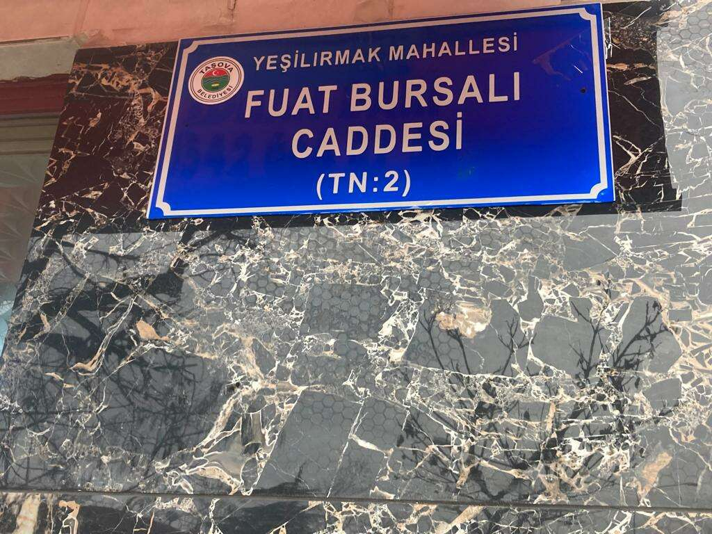 Hükümet Caddesi’nin ismi Yemişen Mahalle Muhtarı Nurdan Yılmaz’ın Taşova Belediye Başkanlığına verdiği dilekçe doğrultusunda, Belediye Meclisinin 04/11/2022 tarih ve 10 no’lu kararı ile ‘Fuat Bursalı Caddesi’ olarak değiştirildi ve yeni tabela takıldı.