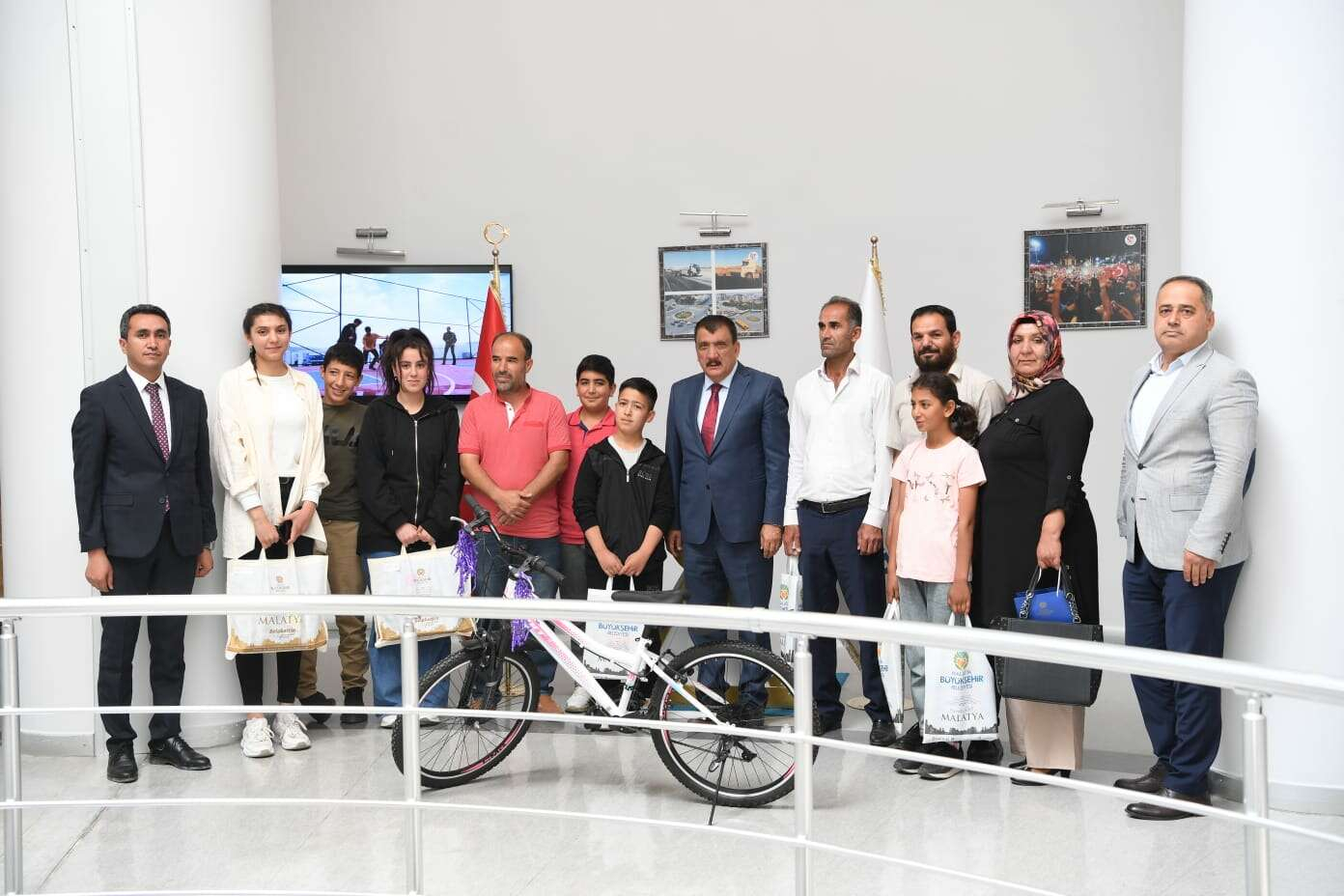 "Rabia kızımız Cumhurbaşkanımızdan bisiklet istemiş, kızımıza bisikletini takdim ediyoruz" diyen Başkan Gürkan, "Reyhan ve Meryem kızlarımızın kırtasiye malzemesine ihtiyacı varmış, kızlarımıza da kitaplarını teslim ediyoruz. Osman evladımız ve Erkan kardeşimiz de tabletlerini güzel günlerde kullansınlar” diye konuştu.