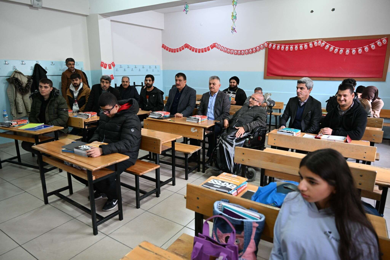 Malatya Büyükşehir Belediye Başkanı Selahattin Gürkan ile Malatya Valisi Ersin Yazıcı, Malatya Büyükşehir Belediyesi Sağlık ve Sosyal Hizmetler Dairesi Başkanlığı tarafından Mustafa Kemal Atatürk Ortaokulu’ndaengelli vatandaşlara yönelik devam eden EKPSS (Engelli Kamu Personeli Seçme Sınavı)kursunu ziyaret ettiler.