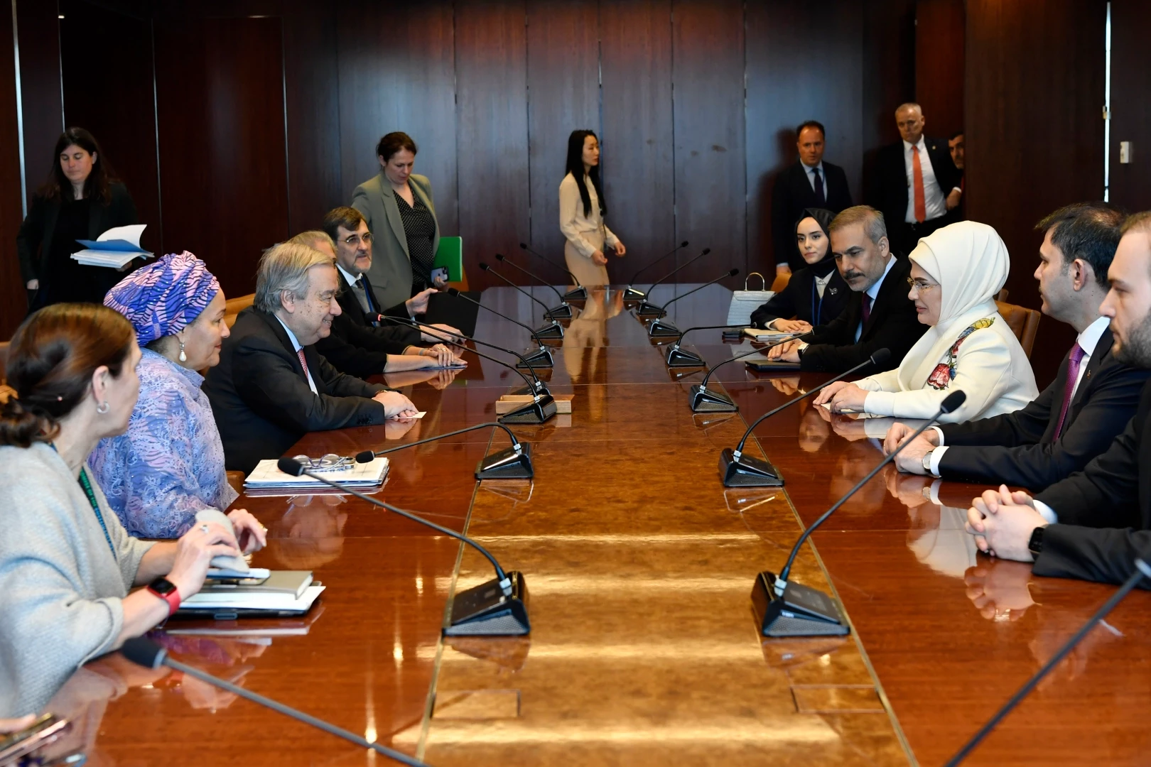 Birleşmiş Milletler (BM) Sıfır Atık Yüksek Düzeyli Şahsiyetler Danışma Kurulu Başkanı Emine Erdoğan, Çevre, Şehircilik ve İklim Değişikliği Bakanı Murat Kurum, Dışişleri Bakanı Hakan Fidan ve Sıfır Atık Vakfı Başkanı Samed Ağırbaş ile birlikte New York BM binasında BM Genel Sekreteri Antonio Guterres'le görüştü. Emine Erdoğan, BM Genel Sekreteri Guterres'i Türkiye'ye davet etti.
