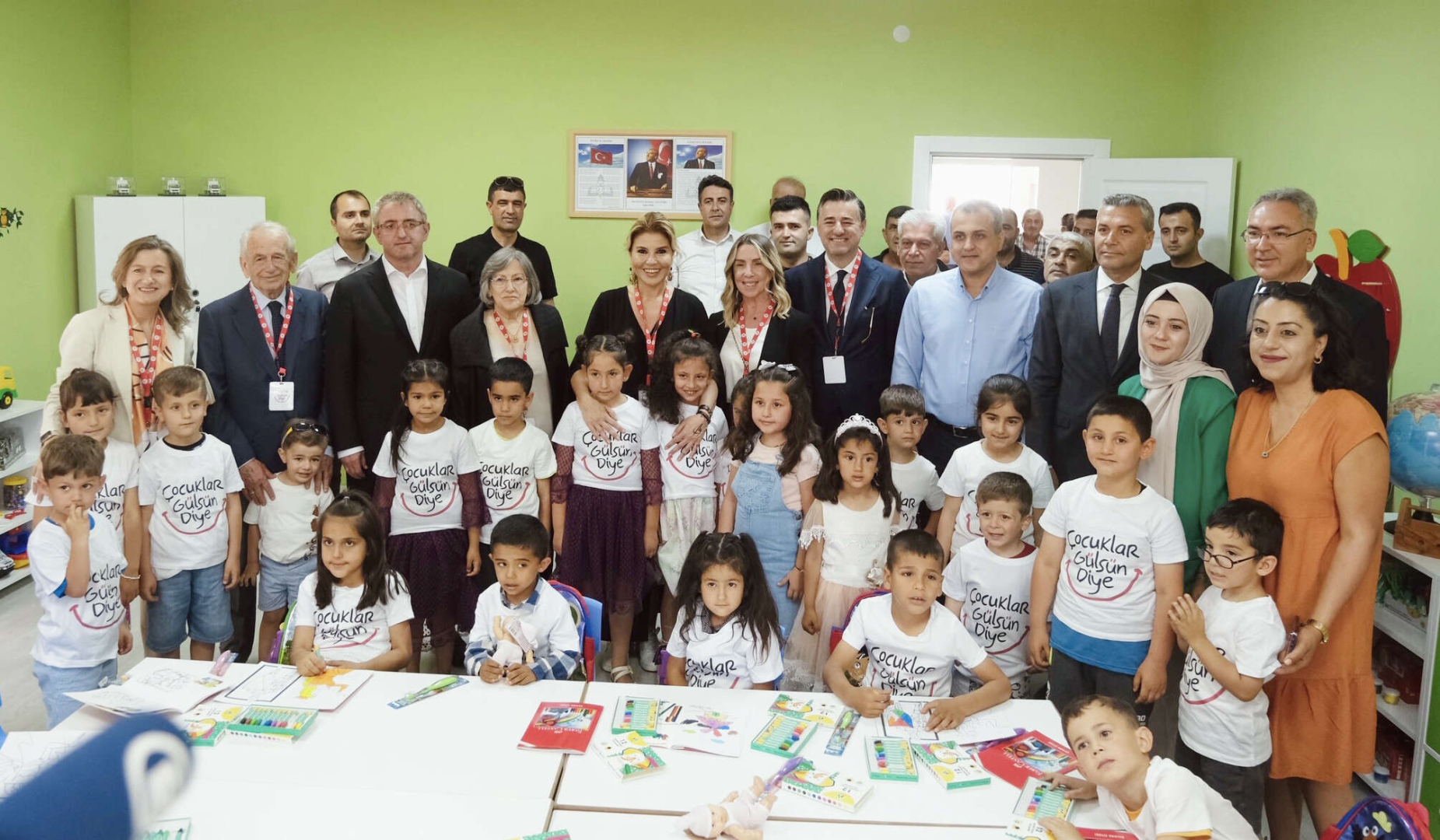 “Çocuklar Gülsün Diye – Anaokulu” açılış törenine Dernek Başkanı Gülben Ergen, Gaziantep Vali Vekili Muhammed Önder ,Gazantep Bükşehir Belediyesi Başkan Vekili Abdullah Aksoy, İslahiye Kaymakamı Mustafa Anteplioğlu, Gaziantep İl Milli Eğitim Müdürü Yasin Tepe, İslahiye İlçe Milli Eğitim Müdürü Musafa Çetin, hayırsever aile ve devlet protokolü katıldı. Açılışın ardından Milli Eğitim Bakanlığı’na bağışlanan Çocuklar Gülsün Diye Ana Okulu’nda yaklaşık 100 öğrenci eğitim alacak.