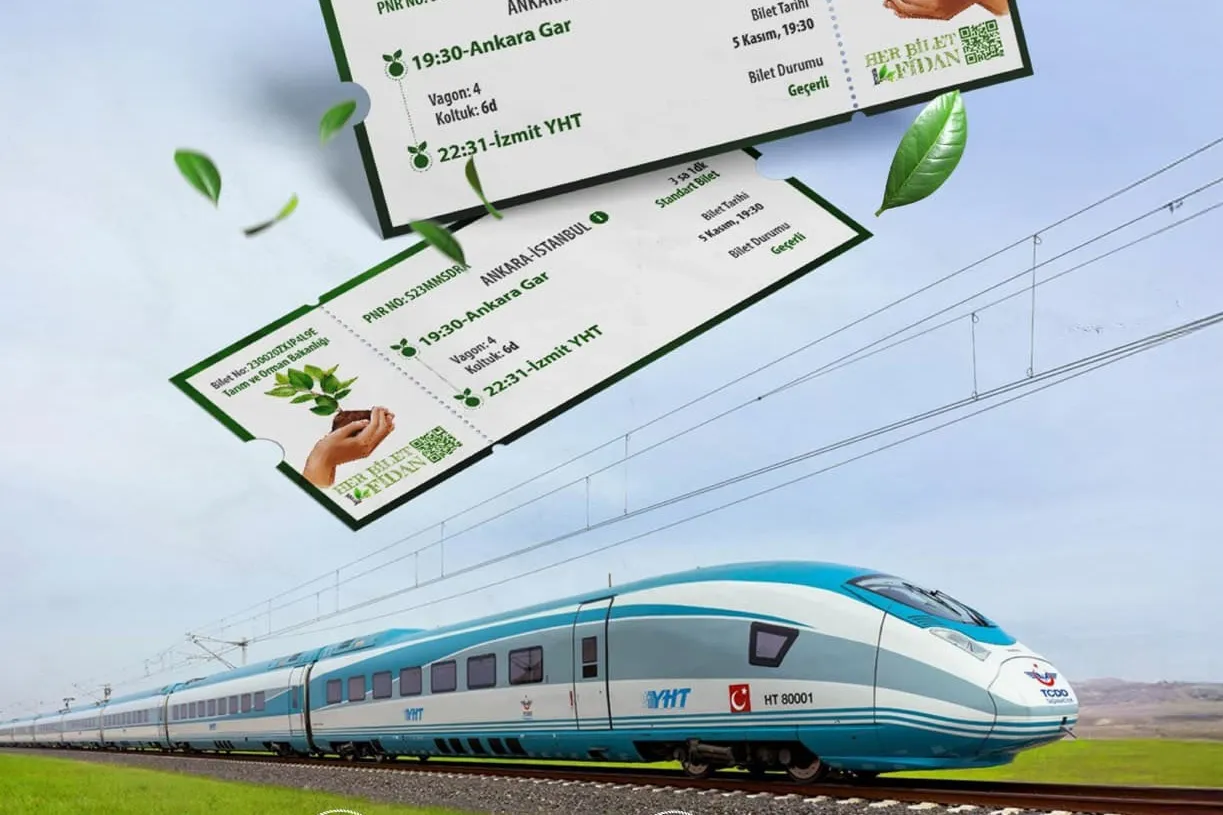 Ulaştırma ve Altyapı Bakanlığı ile Tarım ve Orman Bakanlığı, “Her Bilet Bir Fidan Sevdamız Yeşil Vatan Kampanyası” protokolünü imzaladı. Kampanya kapsamında Yüksek Hızlı Tren (YHT) yolcuları adına toplam 13 milyon fidan dikilecek. Kampanya ile yolcular, sadece bir seyahat yapmış olmayacak, aynı zamanda Yeşil Vatan’ın bir parçası olacak.