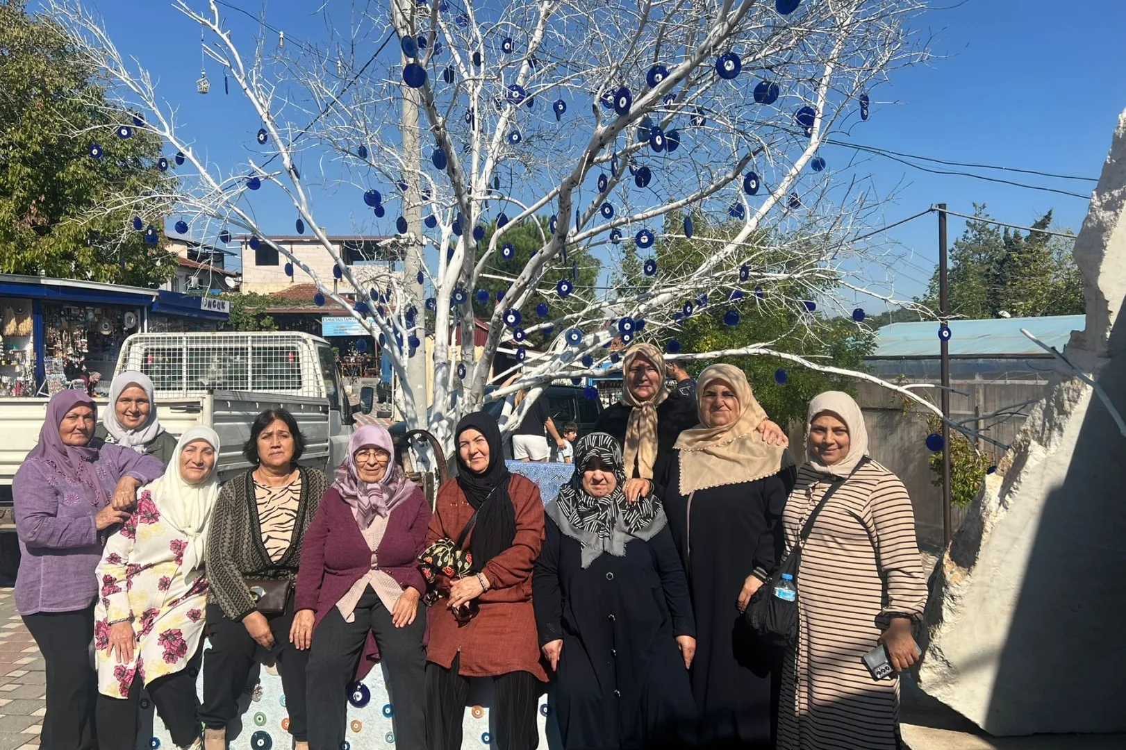 Sasalı ve Kaklıç Mahallesi’nden katılan kadınlar, köyün simgesi haline gelen nazar boncuğu atölyelerinde ustaların el emeğiyle şekillenen cam boncukların yapım sürecini yerinde izledi. Atölye ziyaretlerinin ardından köyün taş sokaklarında yapılan yürüyüşlerle Nazarköy’ün otantik atmosferi keşfedildi.