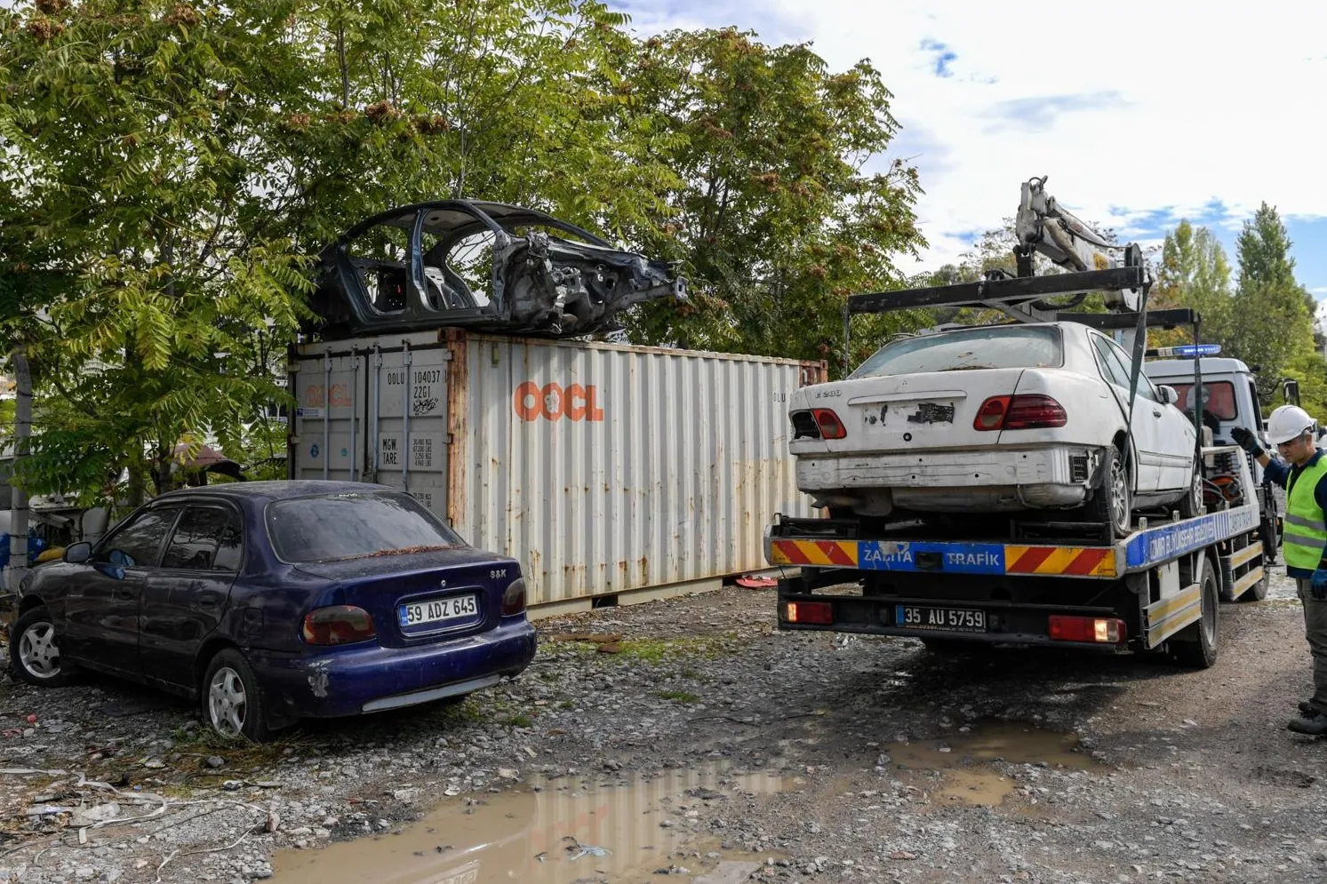 Oto sanayi sitelerinde hurda araçların toplanması yönünde yoğun talep aldıklarını söyleyen Toprakdeviren, “İzmir genelinde toplam 12 sanayi sitesi bulunuyor. Buralarda yoğun çalışma yapıyoruz. Emniyet Müdürlüğü Trafik Şube Müdürlüğü önce şase numarasından aracın kaydına bakıyor. Polis ekipleri tarafından işlemleri yapılan ve trafikten men edilen araçları topluyoruz” diye konuştu.