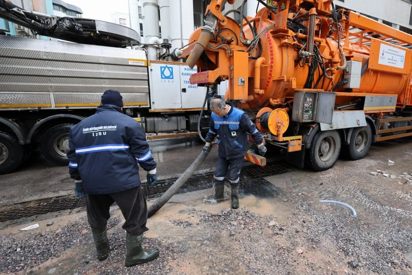 İZSU Genel Müdürlüğü ekipleri özellikle yol ve konutlardaki su baskınlarına müdahale ederken, itfaiye ekipleri su tahliye çalışmalarını sürdürdü. Özellikle suyun biriktiği noktalarda tahliye çalışmalarına ağırlık verildi.