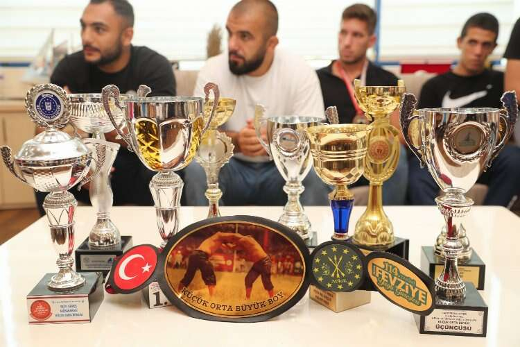 KOCAELİ (İGFA) - İzmit Belediyespor Güreş Takımı, 661. Tarihi Kırkpınar Yağlı Güreşleri ve yıl boyunca katıldıkları müsabakalarda aldıkları kupa ve madalyalar ile birlikte İzmit Belediye Başkanı Fatma Kaplan Hürriyet’i ziyaret etti.
