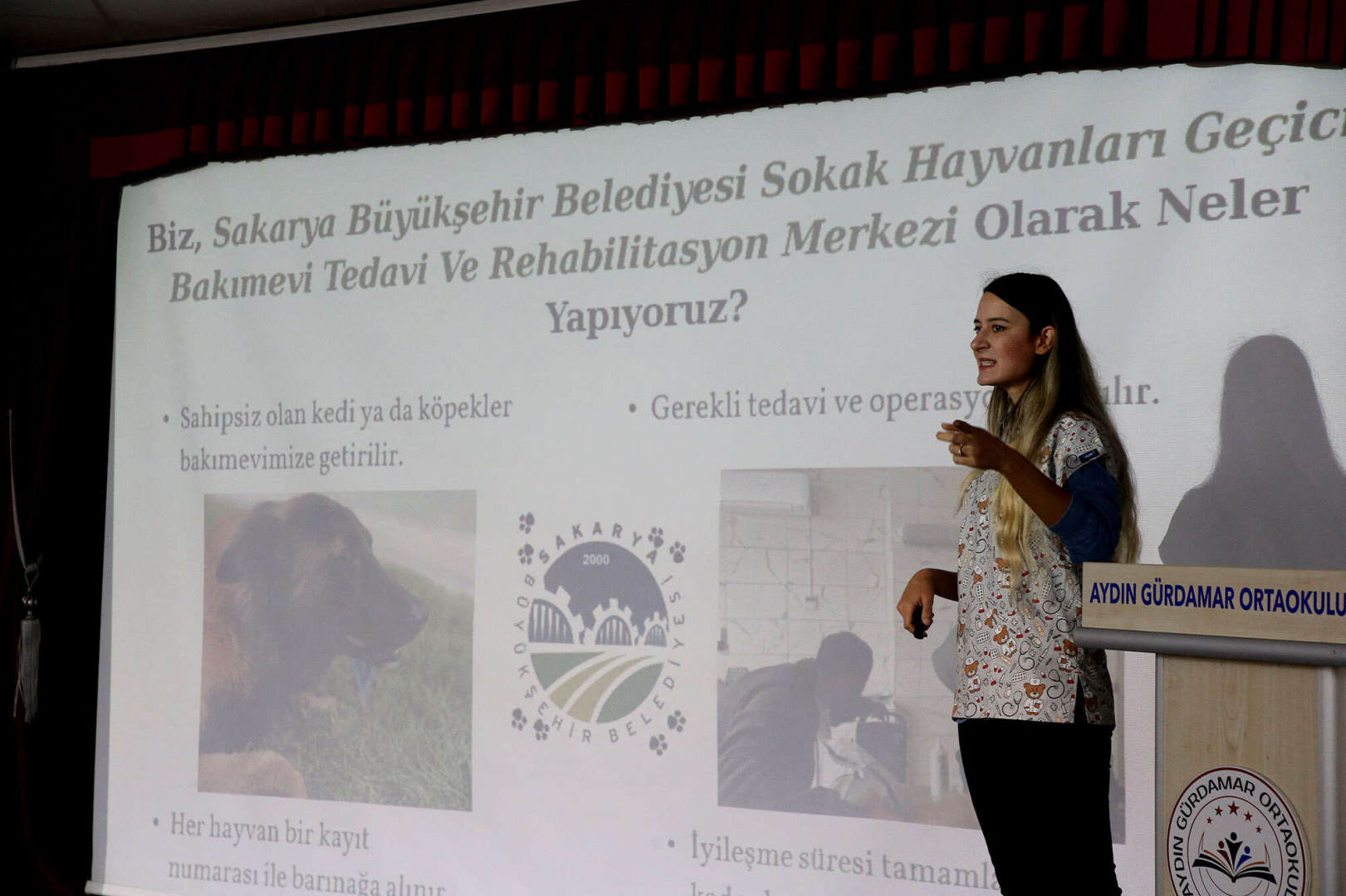 Sakarya Büyükşehir Belediyesi ve İl Sağlık Müdürlüğü ortaklığıyla başlatılan ‘28 Eylül Dünya Kuduz Günü’ seminerlerinde 5 okulda 600’e yakın öğrenciye hayvan sevgisi, hayvanlara yaklaşım yöntemleriyle birlikte hayvan ısırması, tırmalaması ya da salya teması durumunda aşı ve temizliğin önemini anlattı.