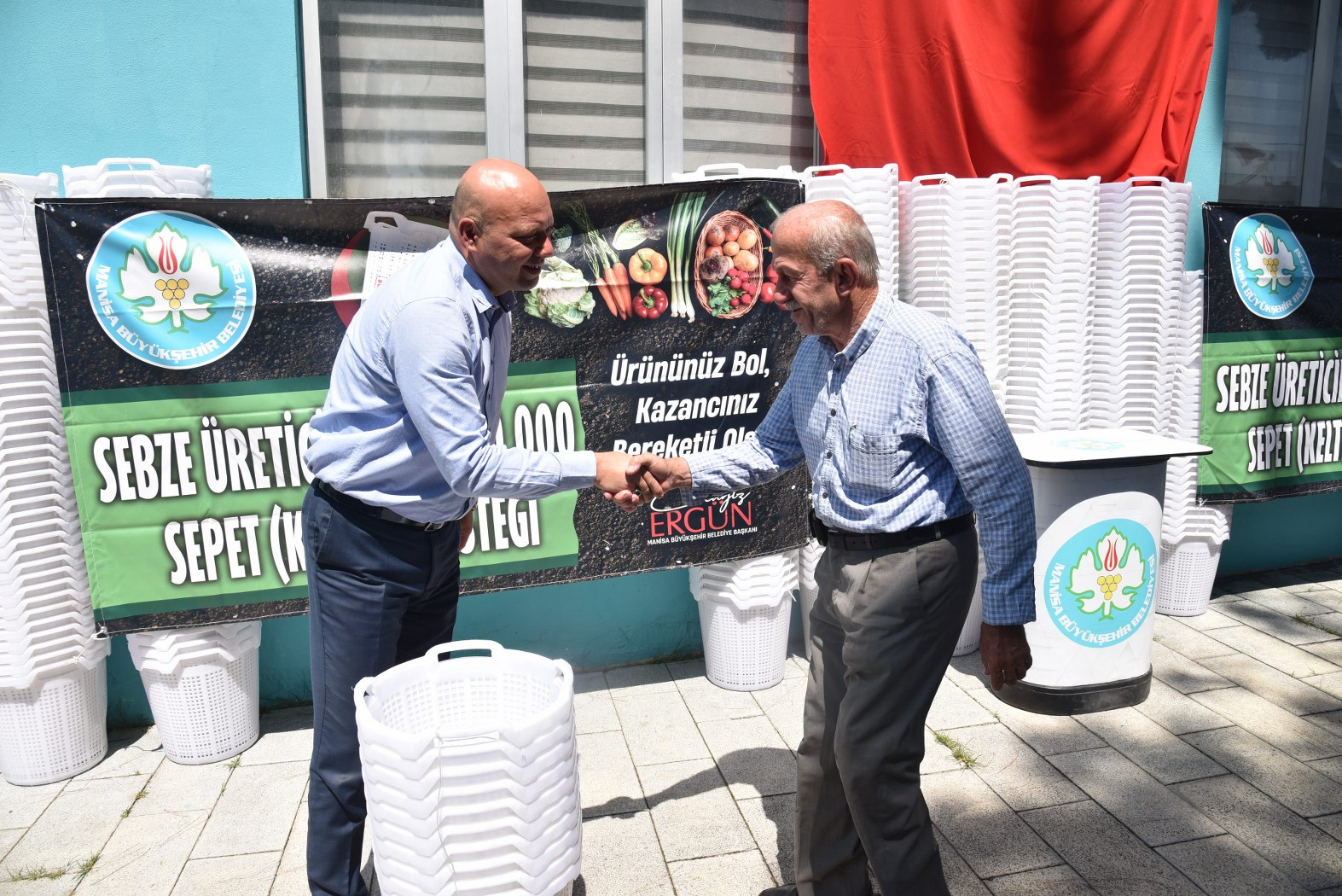 Manisa Büyükşehir Belediyesi, ‘Sebze Üreticilerine 100 Bin Sepet Desteği’ projesi kapsamında ilk dağıtım törenini Saruhanlı'da gerçekleştirdi. 15 dekar ve altı üretim yapan Çiftçi Kayıt Sistemine (ÇKS) kayıtlı 500 sebze üreticisine 5000 adet sepet yüzde 100 hibeli olarak dağıtıldı.