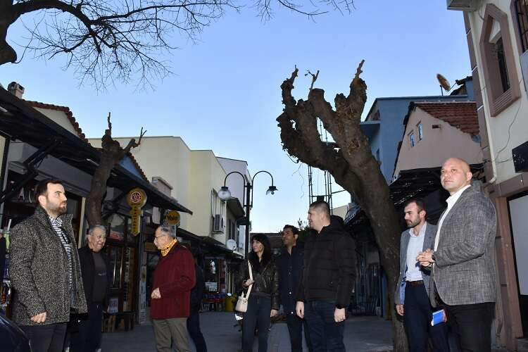 Manisa Büyükşehir Belediyesi Başkan Danışmanı Mimar Azmi Açıkdil, Genel Sekreter Yardımcısı Ali Öztozlu ve Fen İşleri Dairesi Başkanı Uğur Topkaya, Kuyumcular Çarşısı 3. Etap ikinci kısımda devam eden sokak sağlıklaştırma işlerini inceledi.