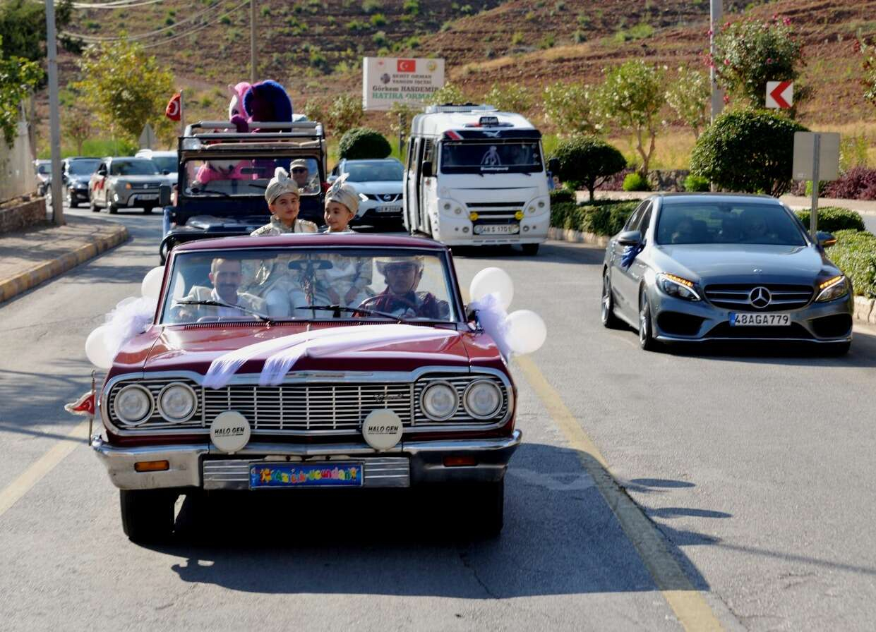 Altın çiftinin düğün sahibi çocukları Çınar ve Ayaz; gündüz 56 model Chevrolet araba ile kenti gezdi, akşamında da at sırtında düğün alanını dolaştı.