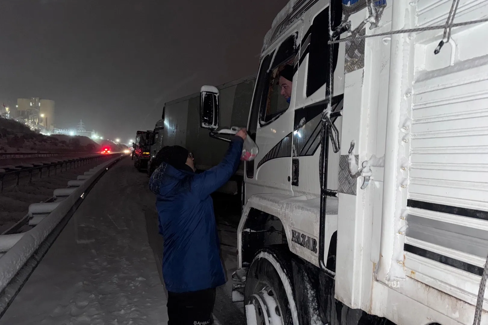 KAHRAMANMARAŞ (İGFA) - Bölgede görev yapan ekipler, mahsur kalan sürücü ve yolcularla tek tek ilgilenerek araçlara çeşitli ikramlarda bulundu.