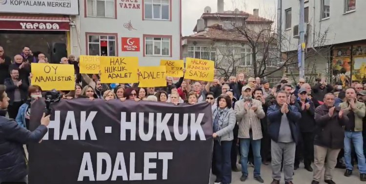 Saat 12.30’da CHP İl Başkanlığı önünde toplanan kalabalık bir grup, burada “Hak Hukuk Adalet” sloganları attı.