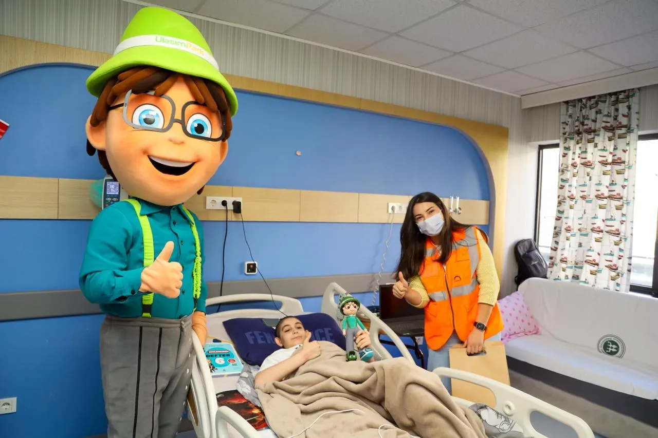 LÖSEV Haftası kapsamında UlaşımPark AŞ tarafından Kocaeli Üniversitesi Hastanesi'ne gerçekleştirilen ziyarette maskot “Ulaşcan” ve kurum personelleri, çocuklara amigurumi tekniğiyle hazırlanmış el yapımı bebekler hediye etti.