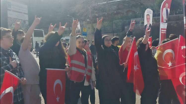 Karacabey ilçe ziyareti sonrasında Bursa’da Zafer Plaza meydanında vatandaşlara hitap eden ve partililer tarafından Türk bayrakları ve tezahüratlarıyla karşılanan Genel Başkan Ümit Özdağ’a, Zafer Partisi Bursa Büyükşehir Belediye Başkan Adayı Bayram Kazancı'nın yanı sıra İlçe Belediye Başkan adayları ve ilçe başkanları eşlik etti.