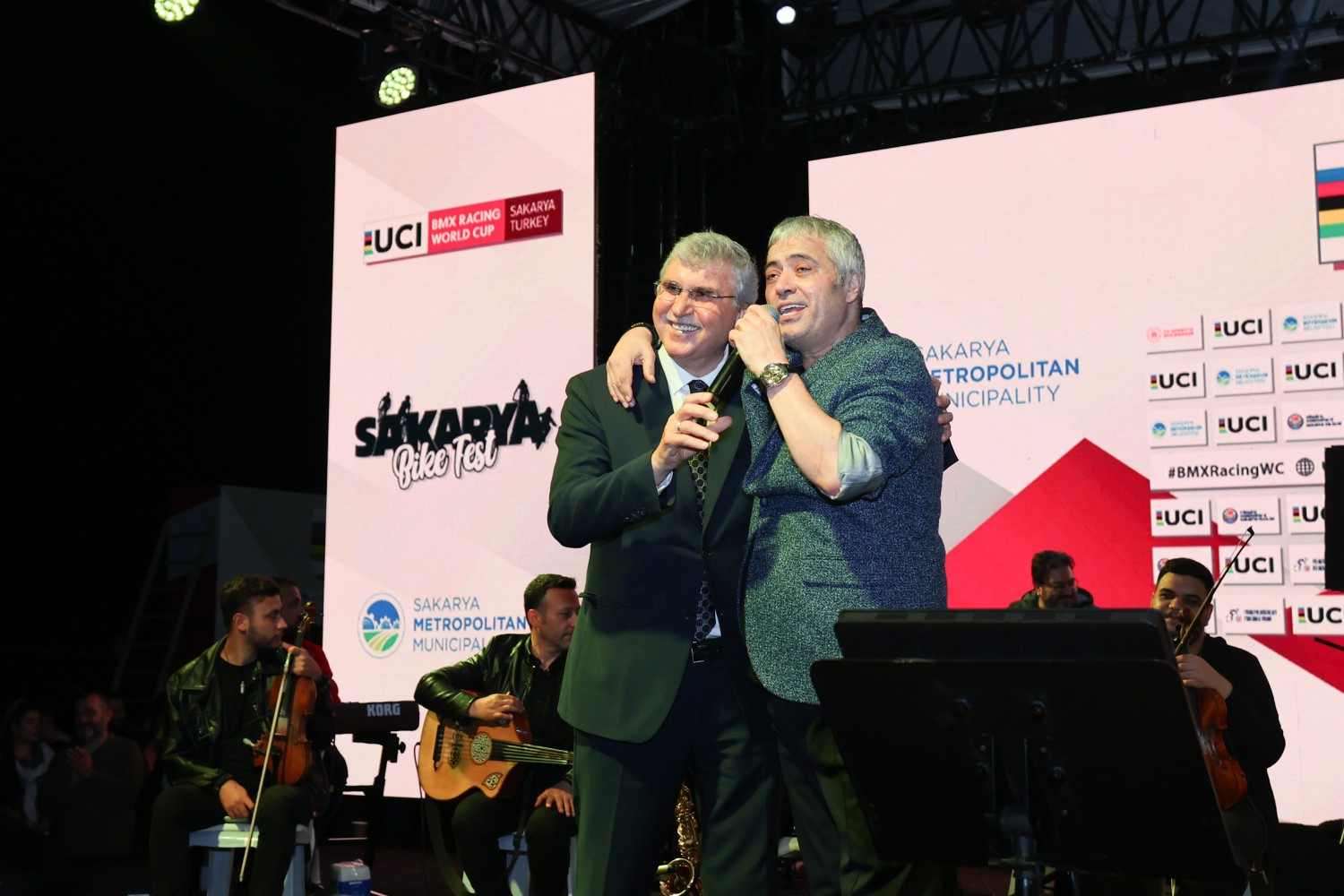 Sakarya Büyükşehir Belediyesi'nin ev sahipliğinde gerçekleştirilen UCI BMX Racing Dünya Kupası yarışlarının ardından sahne alan ünlü sanatçı Cengiz Kurtoğlu, eserleriyle binlerce kişiye unutulmaz anlar yaşattı.